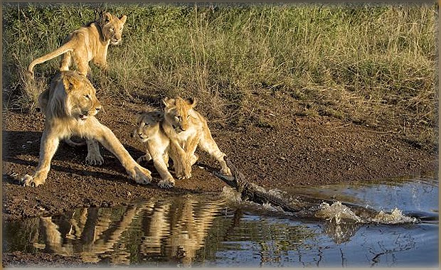 Дело было в Южной Африке. Пошли как-то молодые львята на водопой
