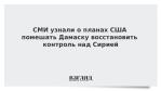 СМИ узнали о планах США помешать Дамаску восстановить контроль над Сирией