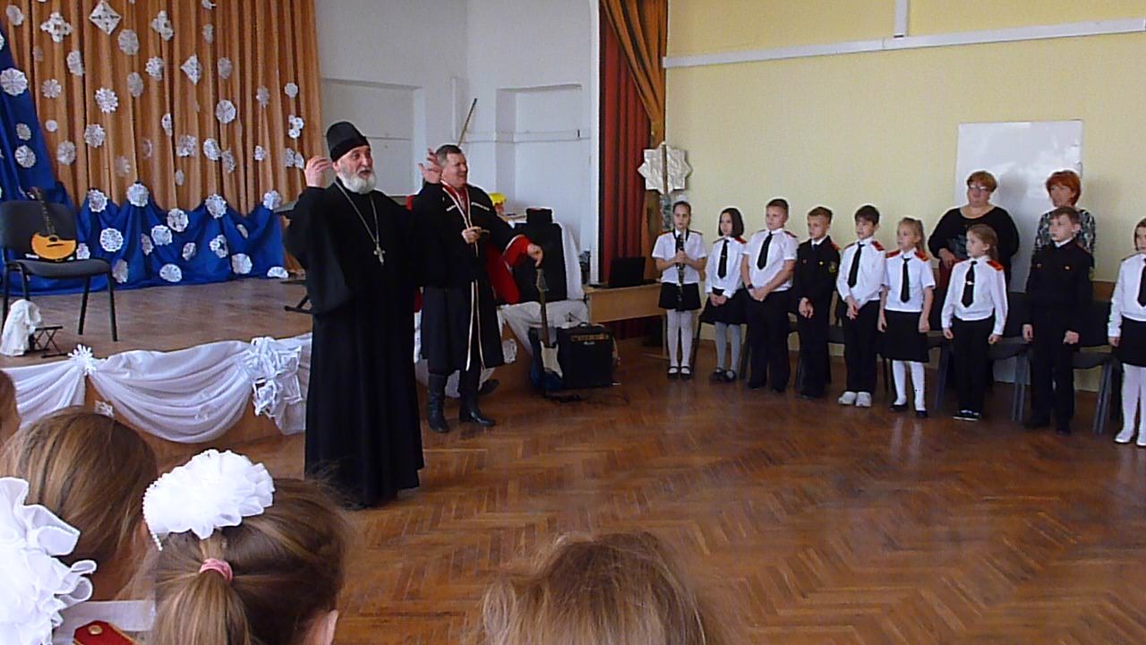 Выступил перед детишками отец Александр. От него казачата узнали, как христиане поздравляют друг друга с Рождеством: