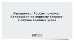 Россия при первом запросе Белоруссии окажет всестороннюю помощь в обеспечении безопасности республики в случае военных угроз, заявил белорусский лидер Александр Лукашенко.