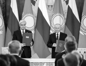 Президенты России и Казахстана Владимир Путин и Касым-Жомарт Токаев подписали Декларацию о всеобъемлющем стратегическом партнерстве двух стран на торжественной церемонии в Кремле.