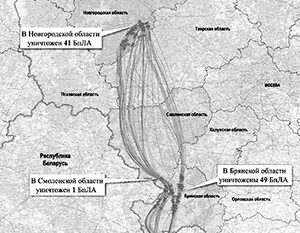 Министерство обороны России показало схему, на которой запечатлены украинские беспилотники, уничтоженные в ходе атаки на резиденцию президента Владимира Путина в Новгородской области.