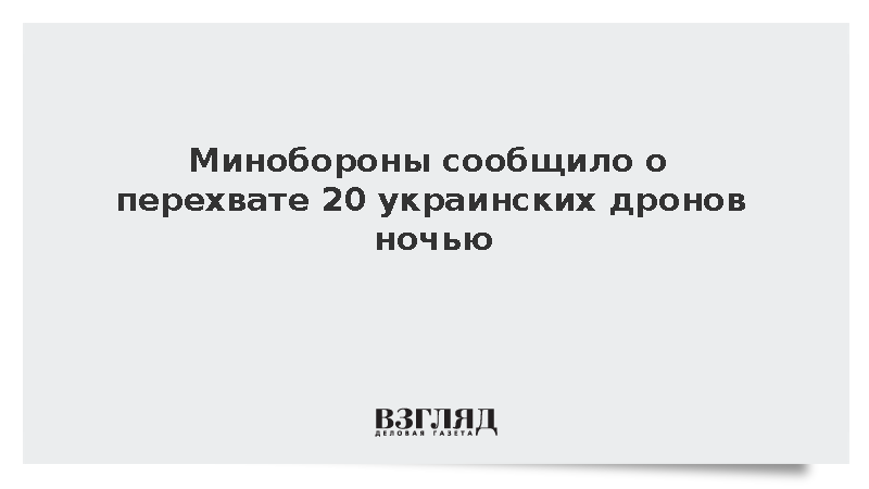 Минобороны сообщило о перехвате 20 украинских дронов ночью