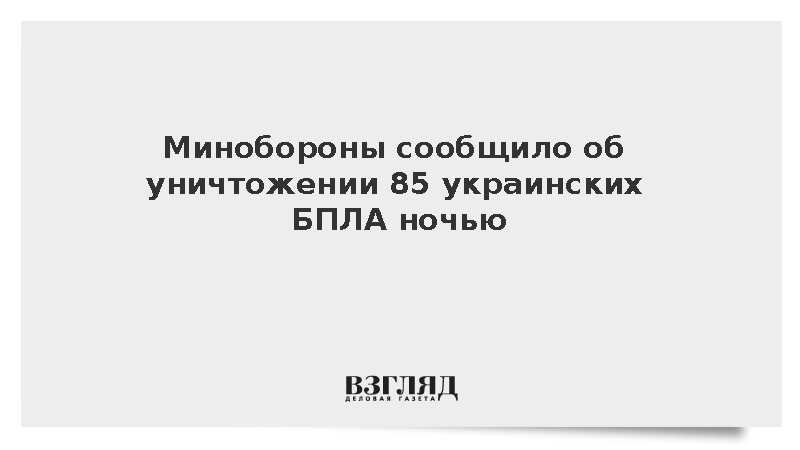 Минобороны сообщило об уничтожении 85 украинских БПЛА ночью