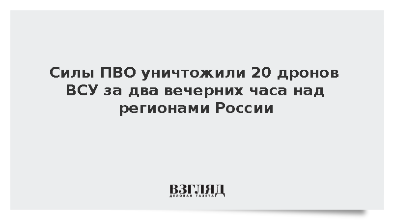 Силы ПВО уничтожили 20 дронов ВСУ за два вечерних часа над регионами России