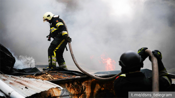По словам Лебедева, в результате около 20 взрывов началась мощная детонация на складе с вооружением ВСУ.