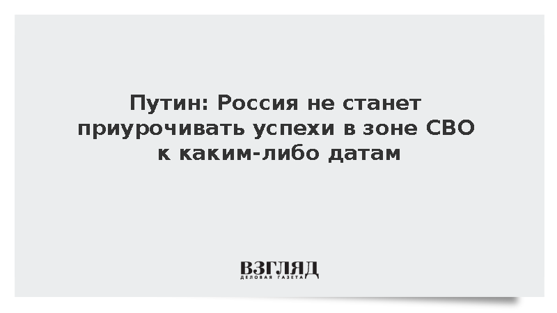 Путин отметил: «Мы к каким-то датам, к каким-то событиям ничего приурочивать не будем. Будем всегда, как это делаем до сих пор, исходить из военной целесообразности и во главу угла ставить сохранность жизней наших ребят, наших военнослужащих». По его словам, этот принцип действует и в текущих условиях.