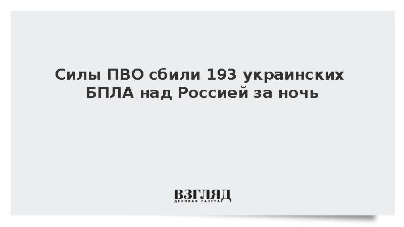 Представители военного ведомства уточнили: «В течение прошедшей ночи дежурными средствами ПВО перехвачено и уничтожено 193 украинских беспилотных летательных аппарата самолетного типа». По количеству сбитых дронов за минувшую ночь лидируют также Брянская область – 47, Калужская область – 42, и Тульская область – 32.