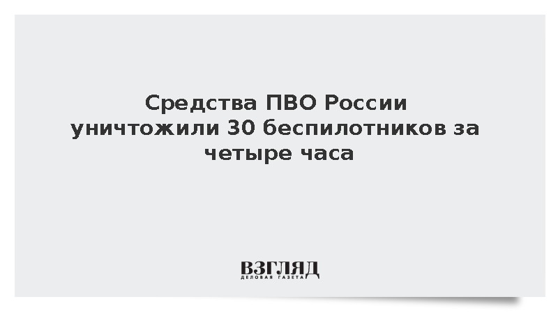 Средства ПВО России уничтожили 30 беспилотников ВСУ за четыре часа