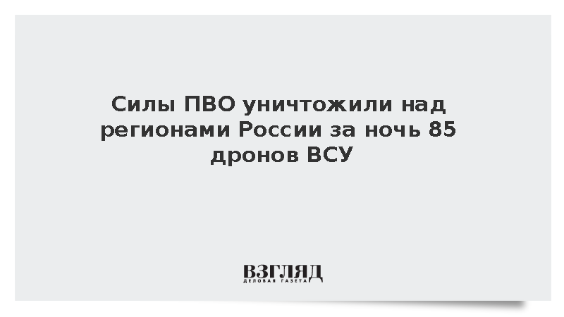 Силы ПВО уничтожили над регионами России за ночь 85 дронов ВСУ