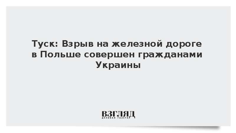 Премьер Польши Дональд Туск заявил в сеймe, что взрыв на железнодорожной линии в Польше, совершили граждане Украины, передает РИА «Новости». По словам польского премьера, интенсивная работа спецслужб, полиции и прокуратуры позволила установить личности двух исполнителей актов диверсий. Это два гражданина Украины.