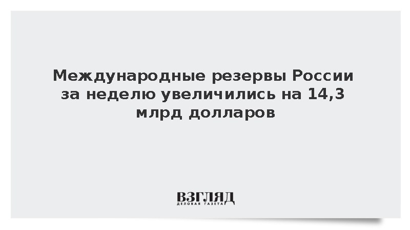 Международные резервы России за неделю увеличились на 14,3 млрд долларов