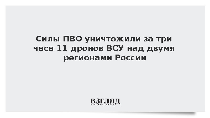 Силы ПВО уничтожили за три часа 11 дронов ВСУ над двумя регионами России