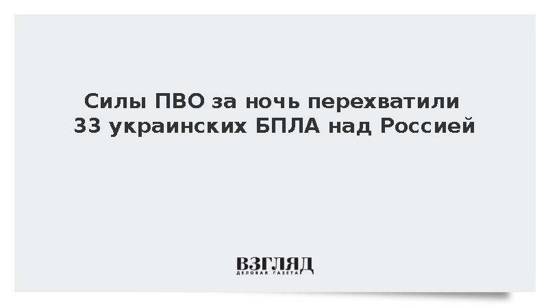 Силы ПВО за ночь перехватили 33 украинских БПЛА над Россией