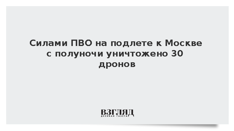 Силами ПВО на подлете к Москве с полуночи уничтожено 30 дронов