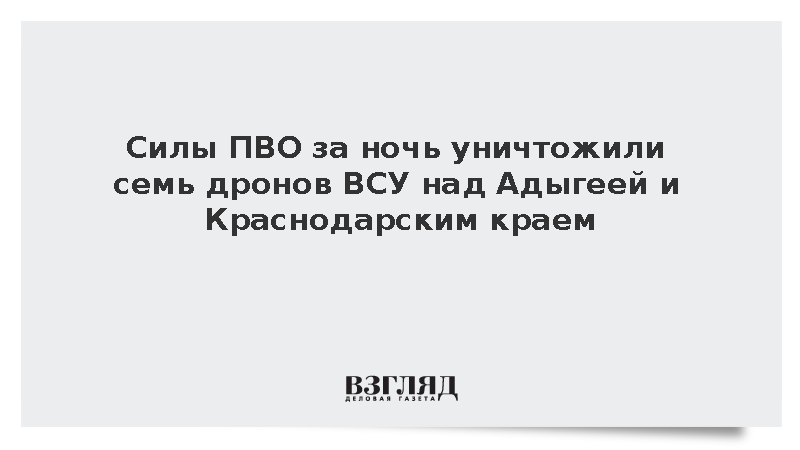Силы ПВО за ночь уничтожили семь дронов ВСУ над Адыгеей и Краснодарским краем