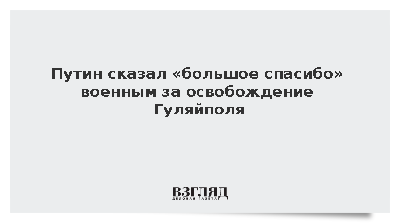 Российский лидер отметил, что «взятие города Гуляйполя в Запорожской области штурмовыми подразделениями 5-й армии является закономерным результатом, который стал возможным благодаря кропотливой работе командиров и штабов, тщательной всесторонней подготовке личного состава к выполнению боевых задач».