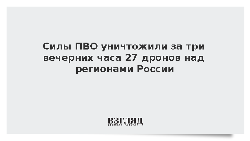 Силы ПВО уничтожили за три вечерних часа 27 дронов над регионами России