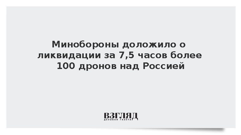 Минобороны доложило о ликвидации за 7,5 часов более 100 дронов над Россией