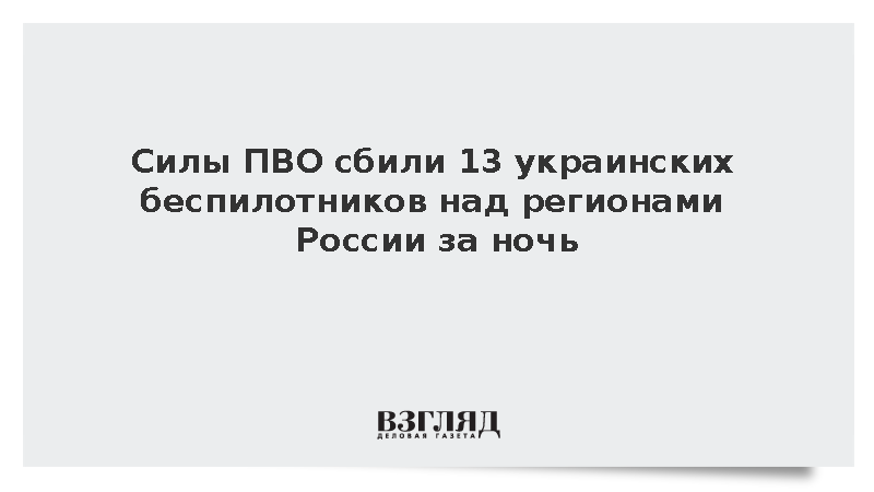 Силы ПВО сбили 13 украинских беспилотников над регионами России за ночь