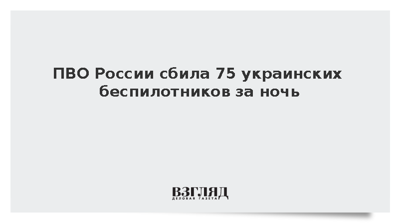 Дежурные средства российской противовоздушной обороны за прошедшую ночь сбили 75 украинских беспилотников над несколькими регионами страны, передает РИА «Новости». Об этом сообщили в Министерстве обороны России.