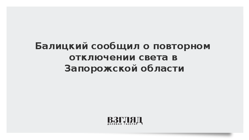 В воскресенье утром Балицкий сообщил, что после массированной атаки ВСУ на энергосистему Запорожской области регион остался без электроэнергии.