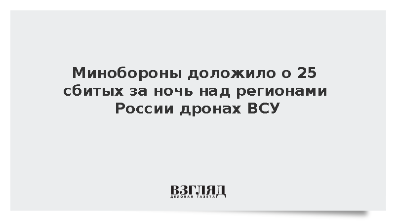 «В течение прошедшей ночи дежурными средствами ПВО перехвачены и уничтожены 25 украинских беспилотных летательных аппаратов самолетного типа над территориями Московского региона, Владимирской, Белгородской, Курской, Тульской, Рязанской, Ростовской, Воронежской, Брянской областей и над акваторией Черного моря», – сказано в сообщении.