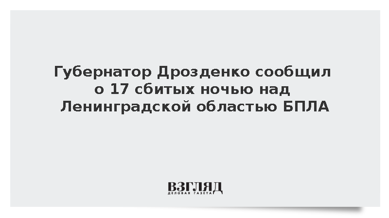 Губернатор Дрозденко сообщил о 17 сбитых ночью над Ленинградской областью БПЛА