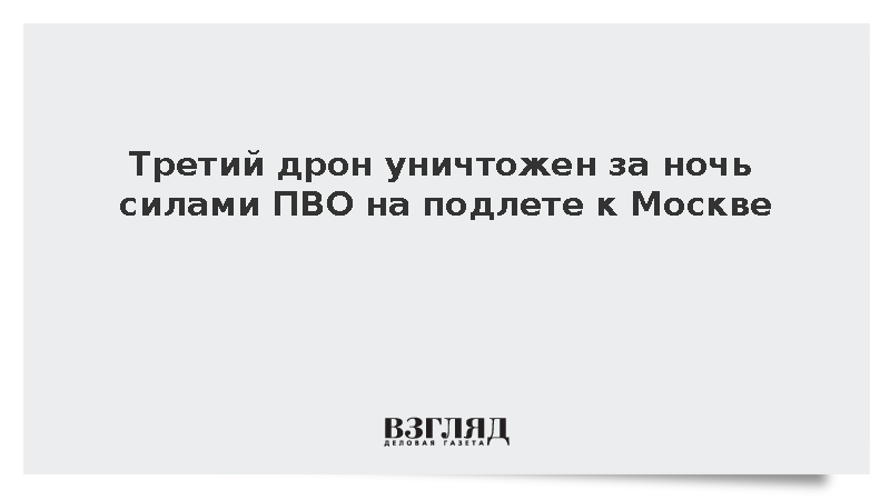 Третий дрон уничтожен за ночь силами ПВО на подлете к Москве