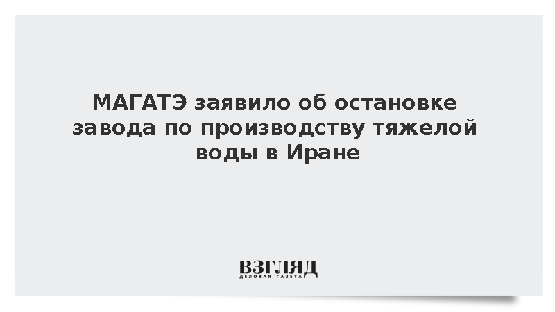 МАГАТЭ заявило об остановке завода по производству тяжелой воды в Иране