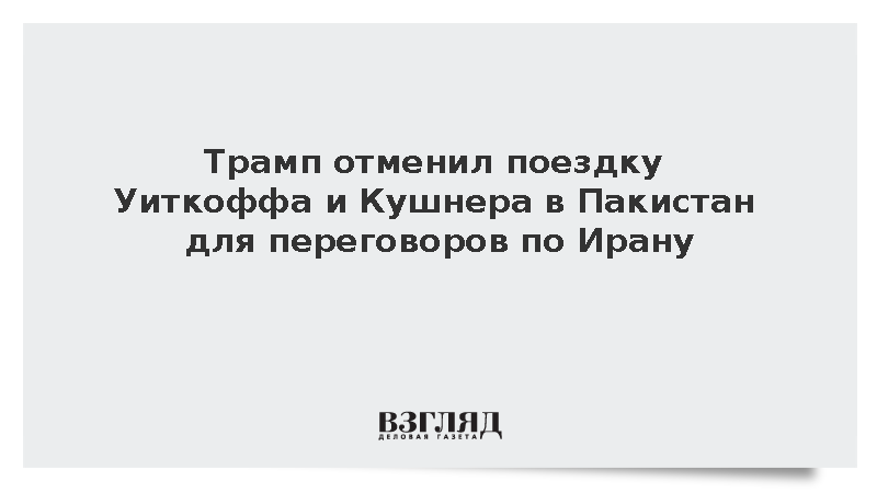 CNN сообщил, что Уиткофф и Кушнер отправятся в Пакистан на переговоры с Ираном.