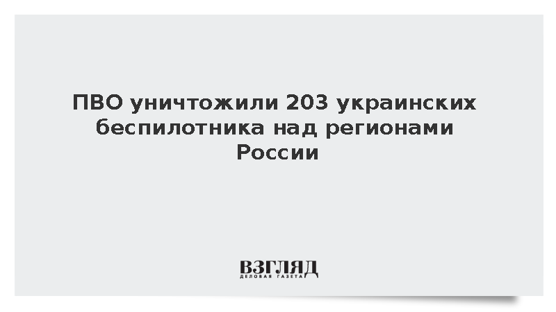 ПВО уничтожили 203 украинских беспилотника над регионами России