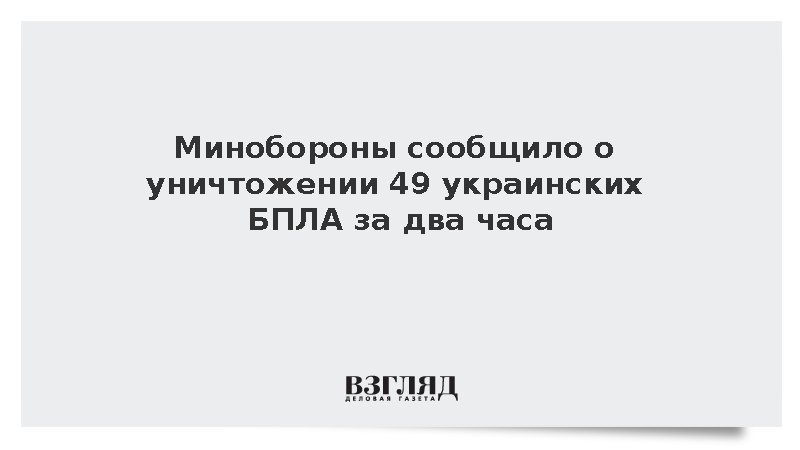 Минобороны сообщило о уничтожении 49 украинских БПЛА за два часа