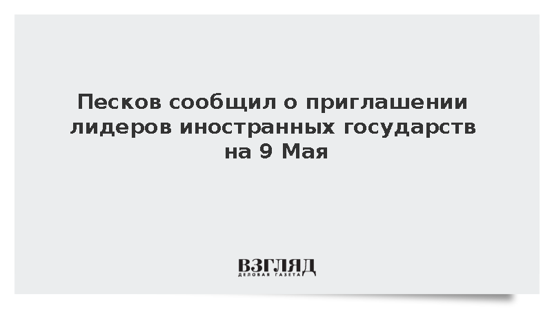 Как писала газета ВЗГЛЯД, пресс-секретарь президента России Дмитрий Песков заявил, что Кремль сообщит о гостях парада Победы в столице в установленные сроки. Помощник президента Юрий Ушаков также отмечал, что несколько государственных деятелей выразили намерение прибыть в Москву на 9 Мая.
