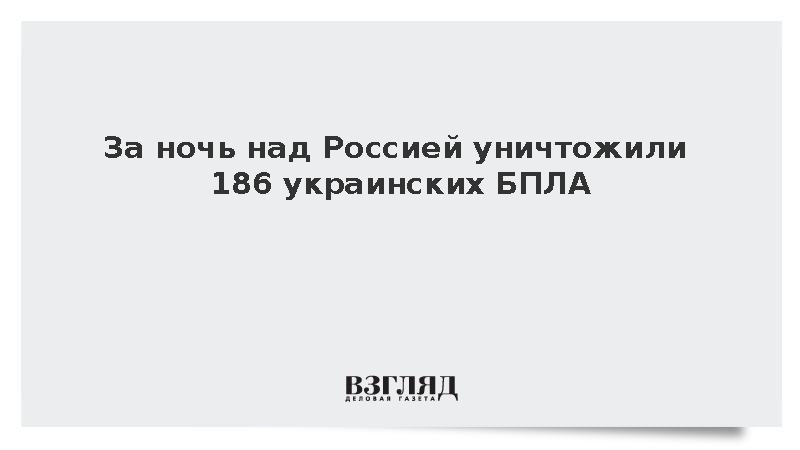За ночь над Россией уничтожили 186 украинских БПЛА