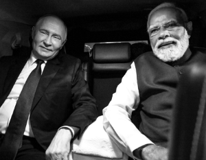 Президент России Владимир Путин занял почетное место пассажира в автомобиле премьер-министра Индии Нарендры Моди, отправившись с ним на неформальную встречу в Нью-Дели.